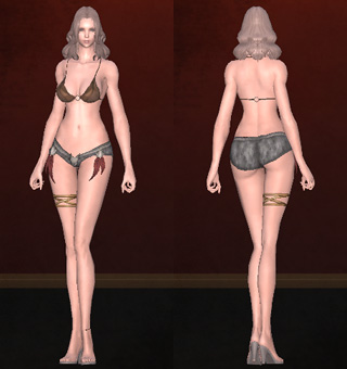 | ズボン | ティアージュのレギンス(26) ダークレイトのグリーブ(45) ロンリスターのズボン(50) 亡国アイトニーのバトルズボン(75) | ![]() | ![]() |