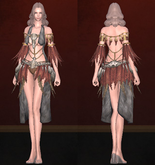 | 上着 | ティアージュのローブ(26) ライトデイのローブ(42) ロンリスターのクロースアーマー(50) プロミスディザスターのプロテクトクロース(58) ワイズジャケット(63) ケアフリーリーダークロースアーマー(67) 亡国アイトニーのバトルローブ(76) | ![]() | ![]() |