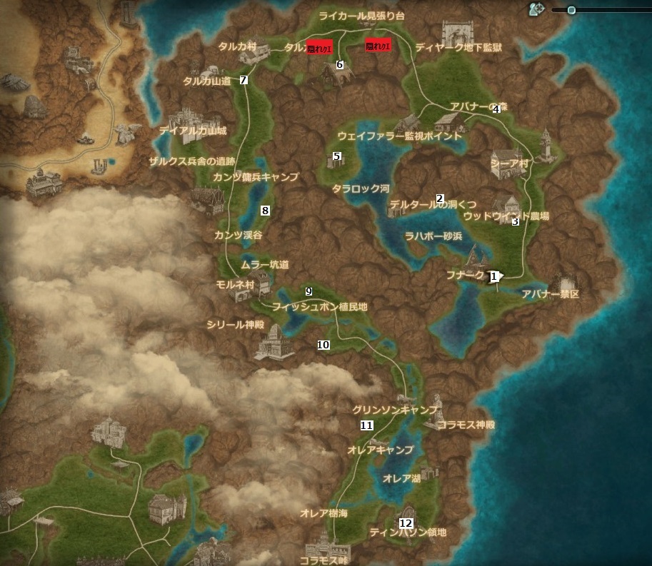 | 5 | 孤島の真夜中 | 10 | 侵略された洞窟 | 11000 | 隠れ | 祭壇クエ:2箇所 |