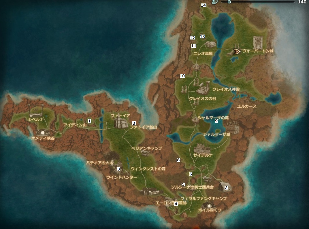 | 4 | アイロン遺跡の地下 | 9 | シャルマーザの滝 | 14 | ジャイアントの棲家 | |||
